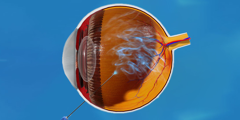 Inyecta medicamento dentro del ojo para tratar edema o degeneración macular.